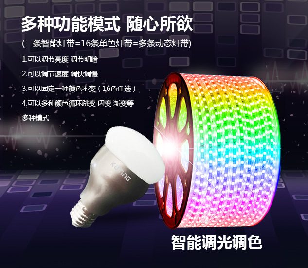 ZigBee RGB灯泡,随时调控灯光颜色,用餐场景,观影场景,聪明屋智能照明系统给生活增加一点颜色。